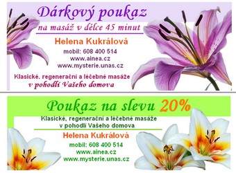 Hledáte dárek pro své blízké? Naše dárkové poukazy udělají radost všem. Poukazy můžete zaplatit kurzy nebo masérské a poradenské služby. Poukazy Vám vytvoříme dle Vašeho přání. Masáže
